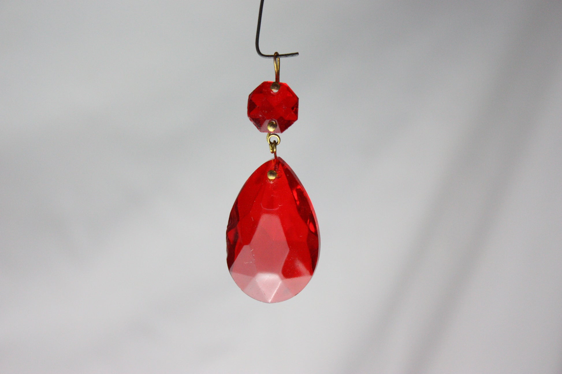 1-1/2" Pressed glass teardrop w/ flat back pinned with a matching top bead.