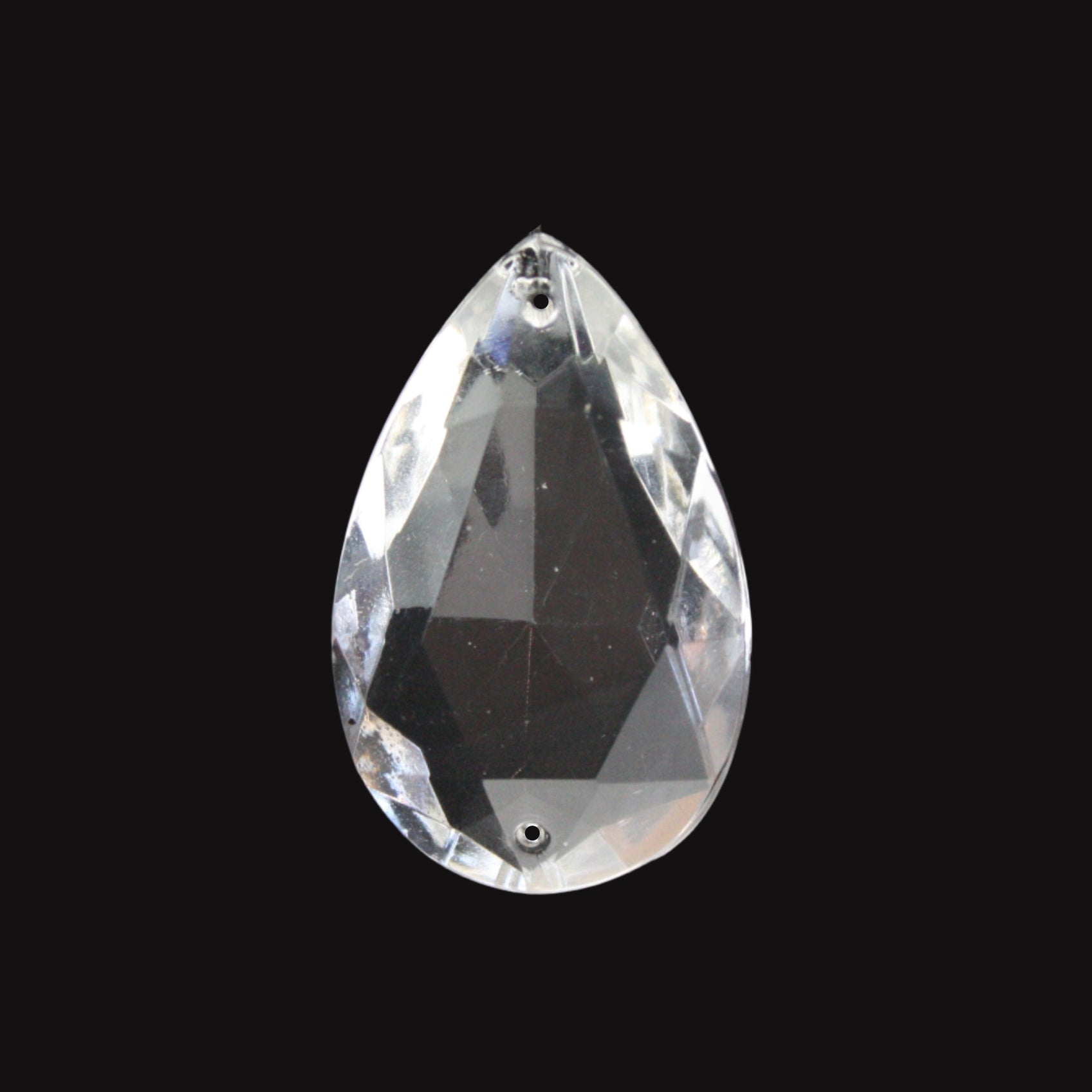 1-1/2" x 7/8" wide hand-cut and polished clear crystal teardrop with two holes. Half Cut Teardrop - has 1 flat side.