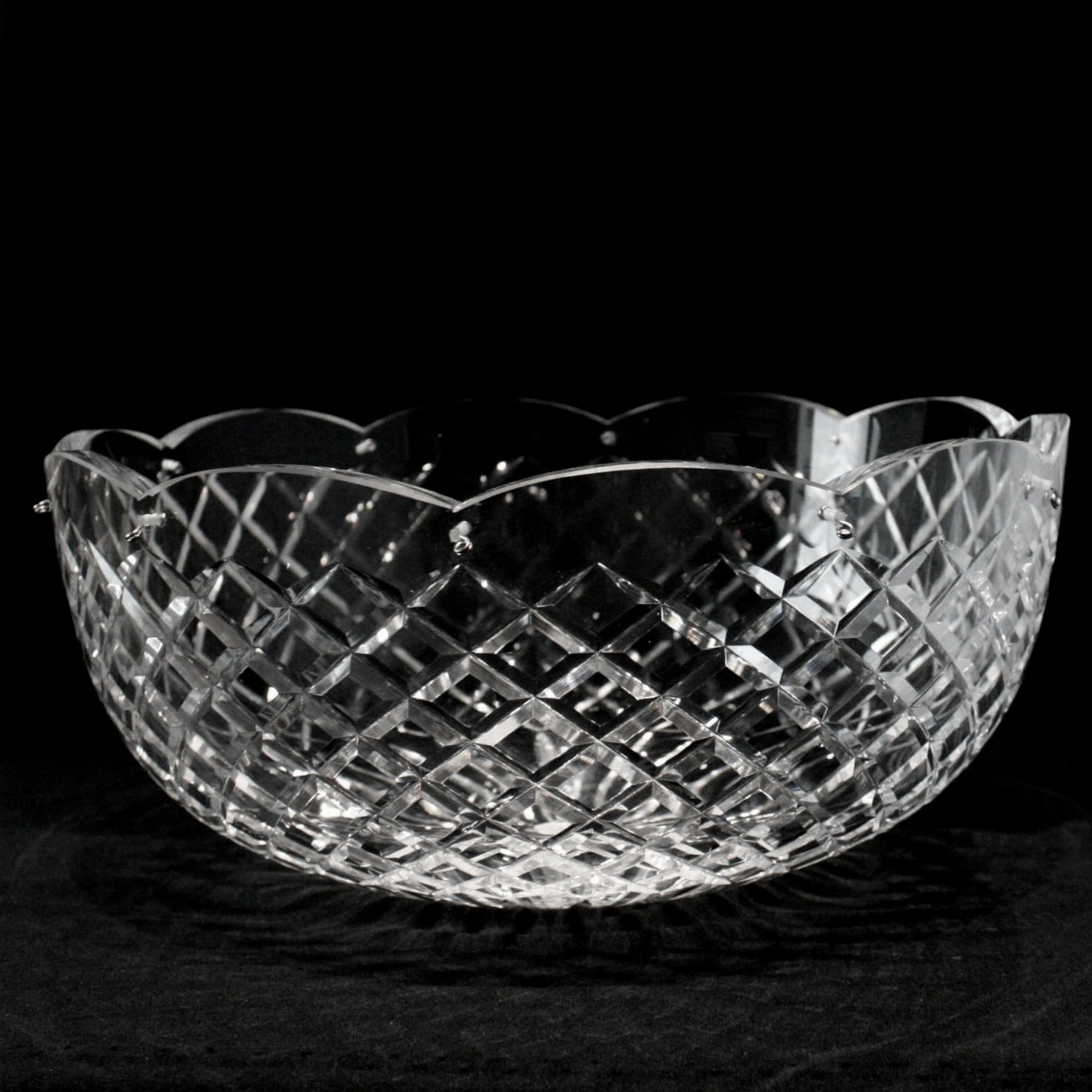 10" Hand-cut and polished Czech crystal bowl w/ scalloped edge.