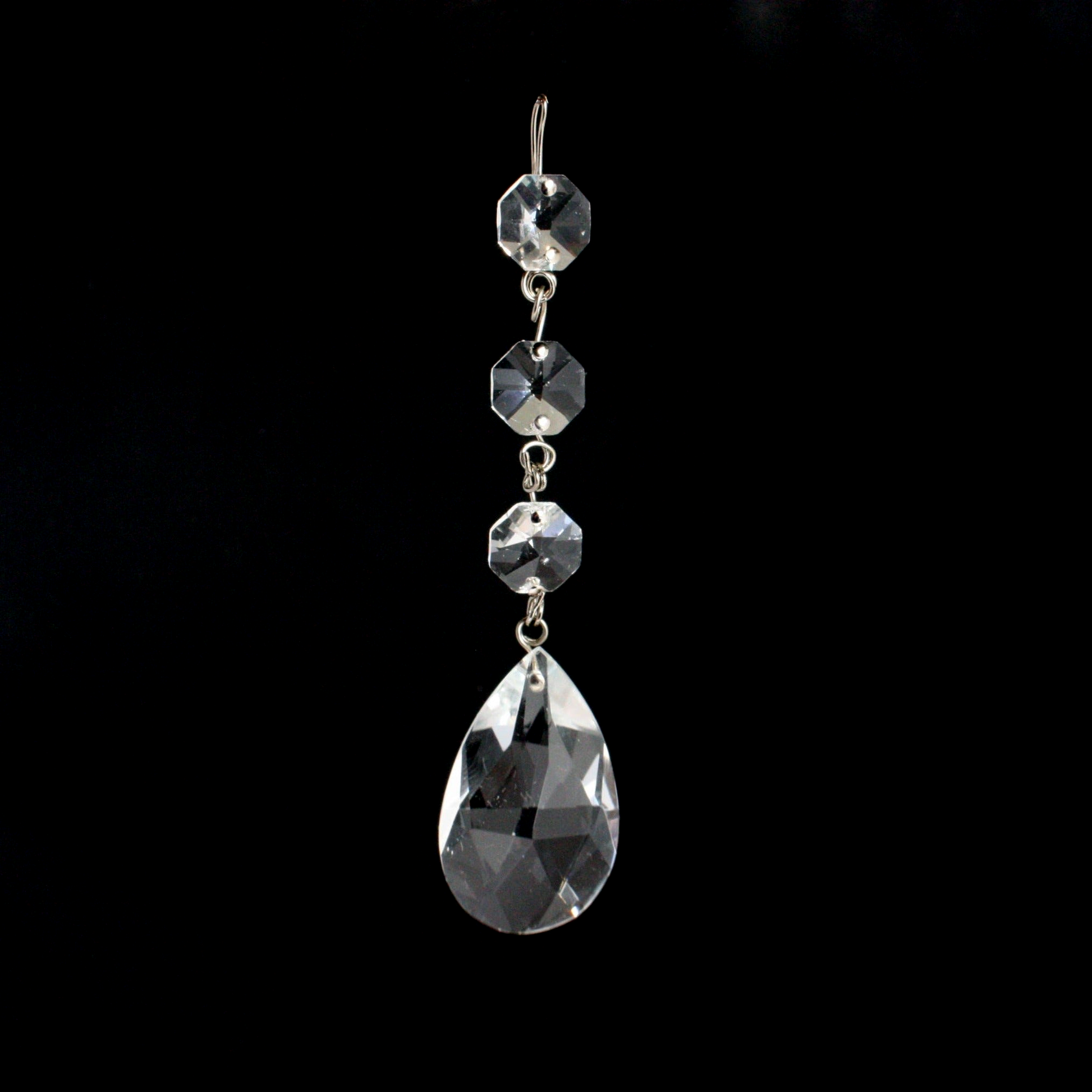 2" Full cut teardrop with 3 14mm radiant cut octagons. Double loop chrome pinning.