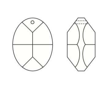 Clear 1-hole full cut oval bead - pointed on both sides.