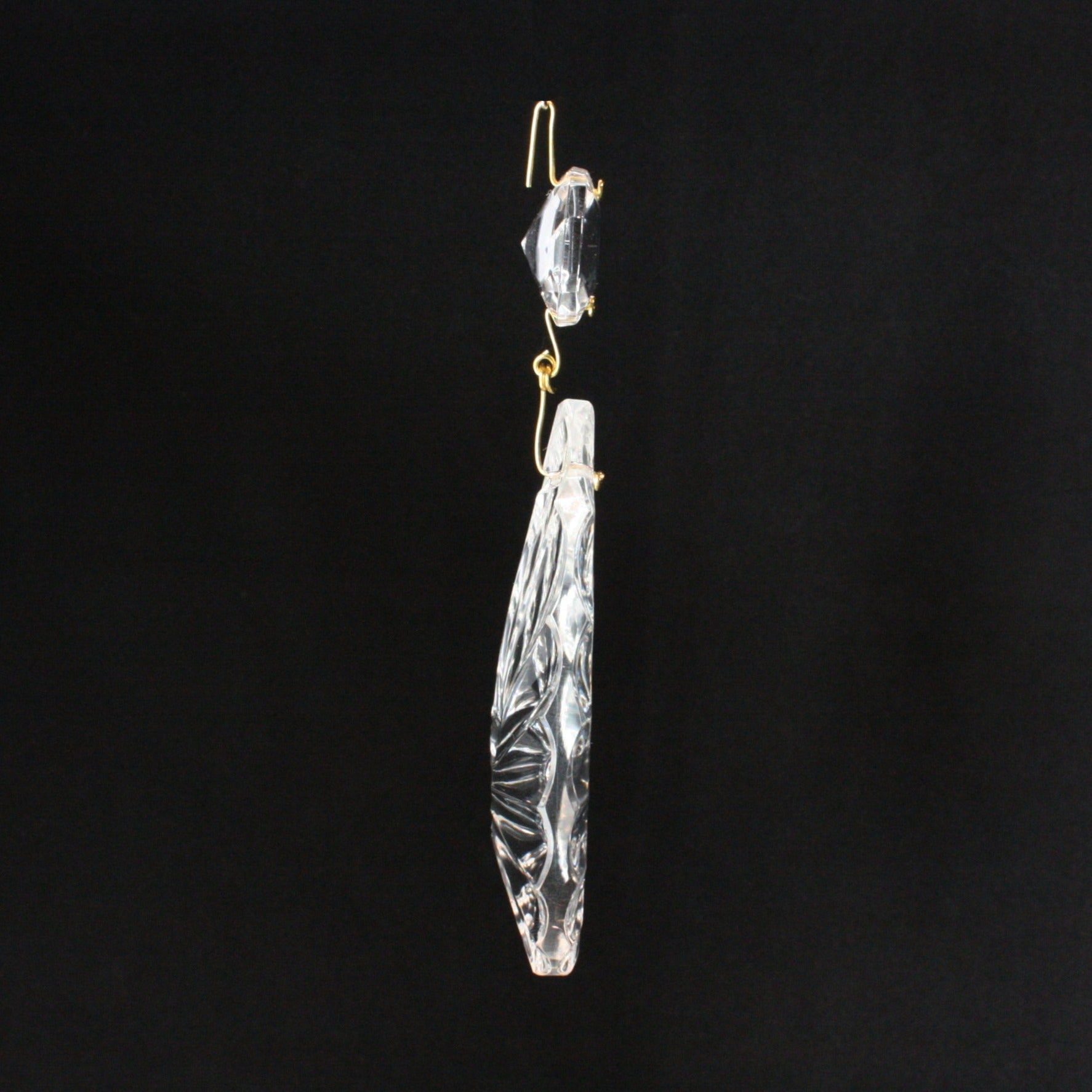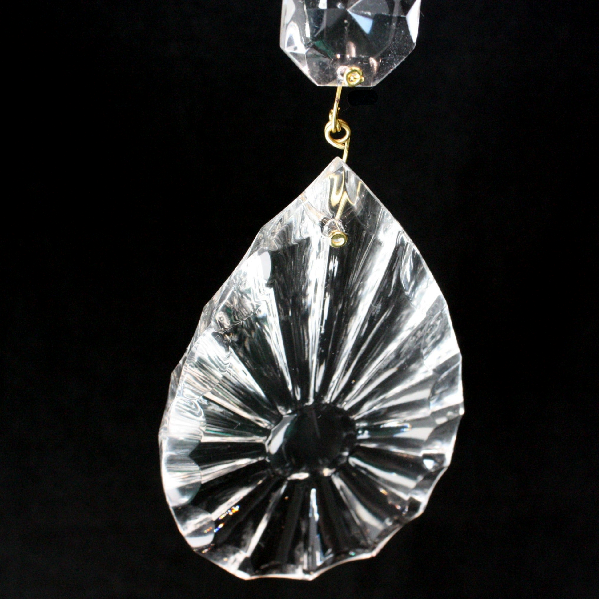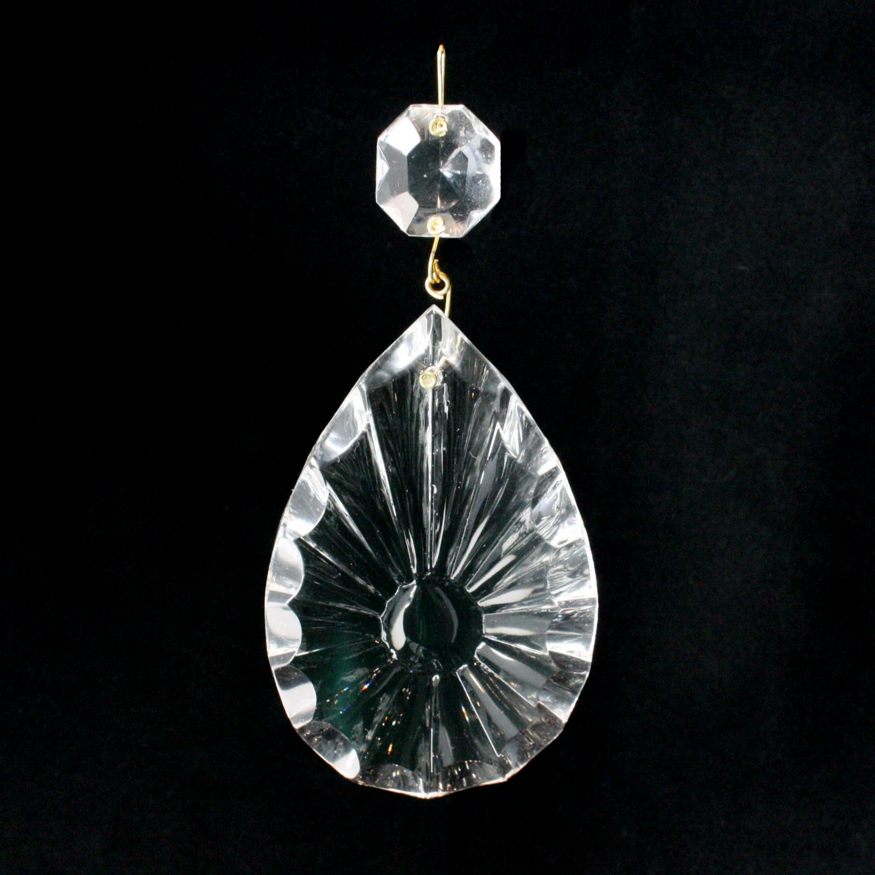 3-1/2" Czech Crystal Ribbed Teardrop w/ Top Bead