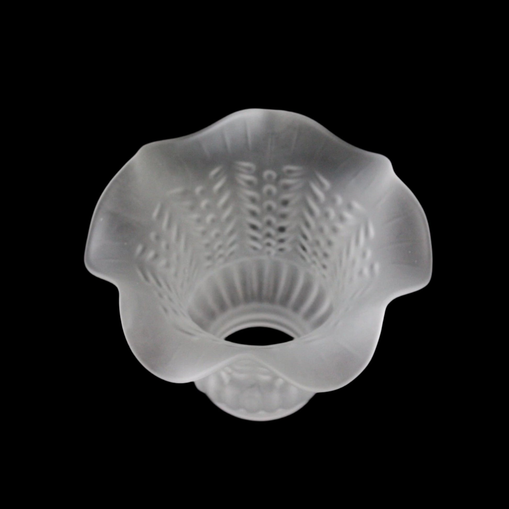 Glass 4" frosted crystal shade with a 5-1/4" wide top, 43mm bottom opening.