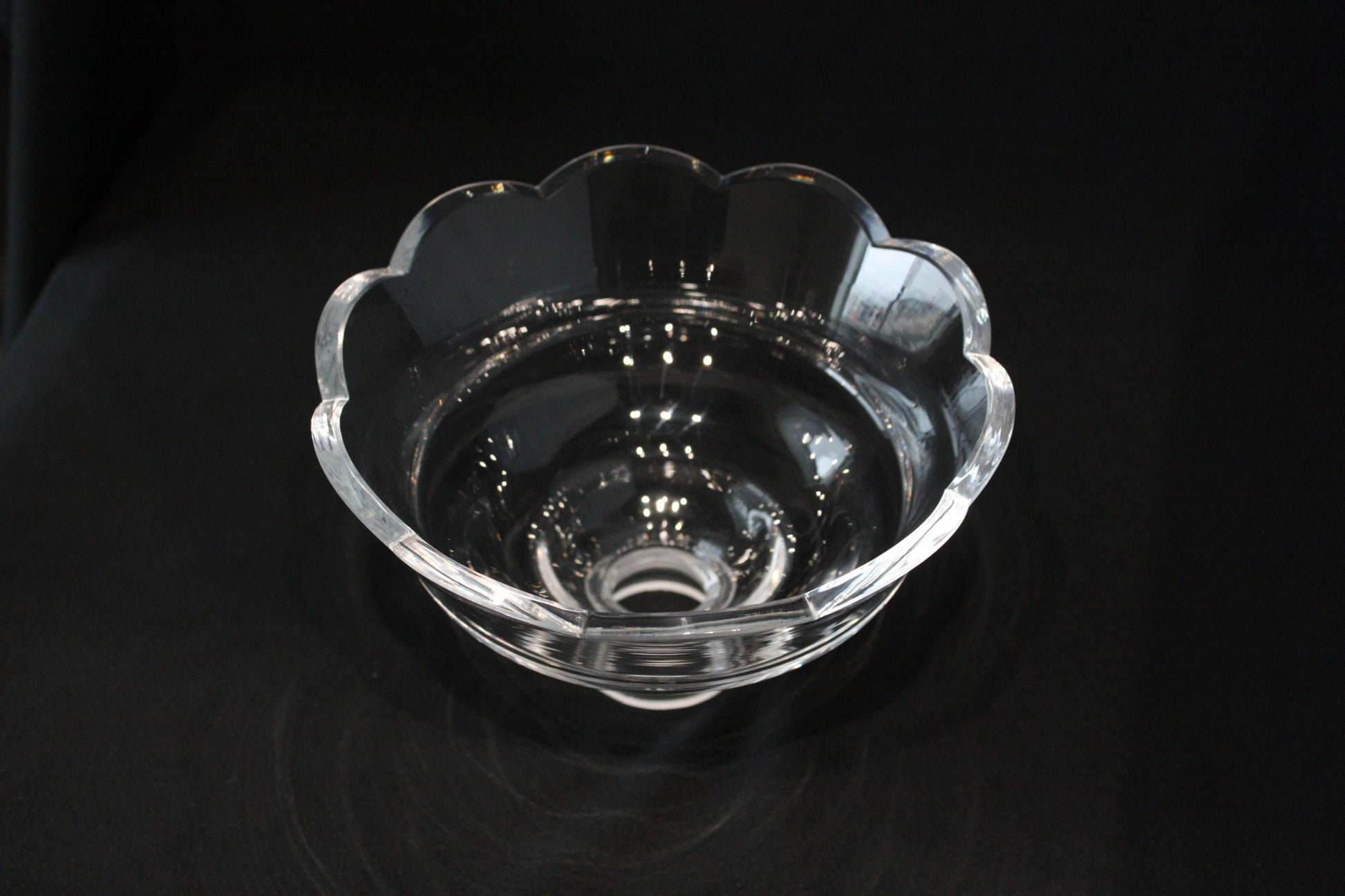 6" wide hand-polished Czech crystal body dish/bowl w/ scalloped edge.