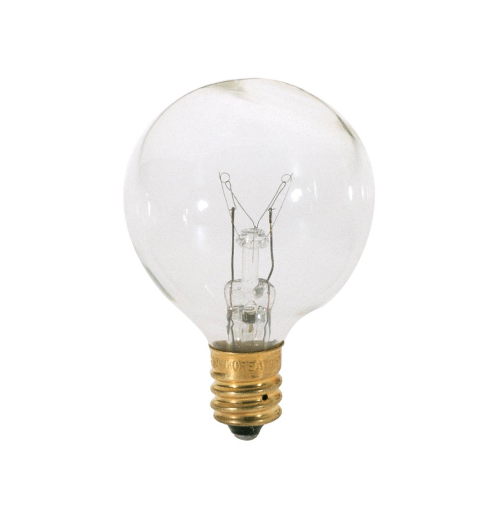 G12.5 (2.4" x 1.5") Incandescent; Clear; 1500 Average rated hours; Candelabra base (E12); 120 Volt
