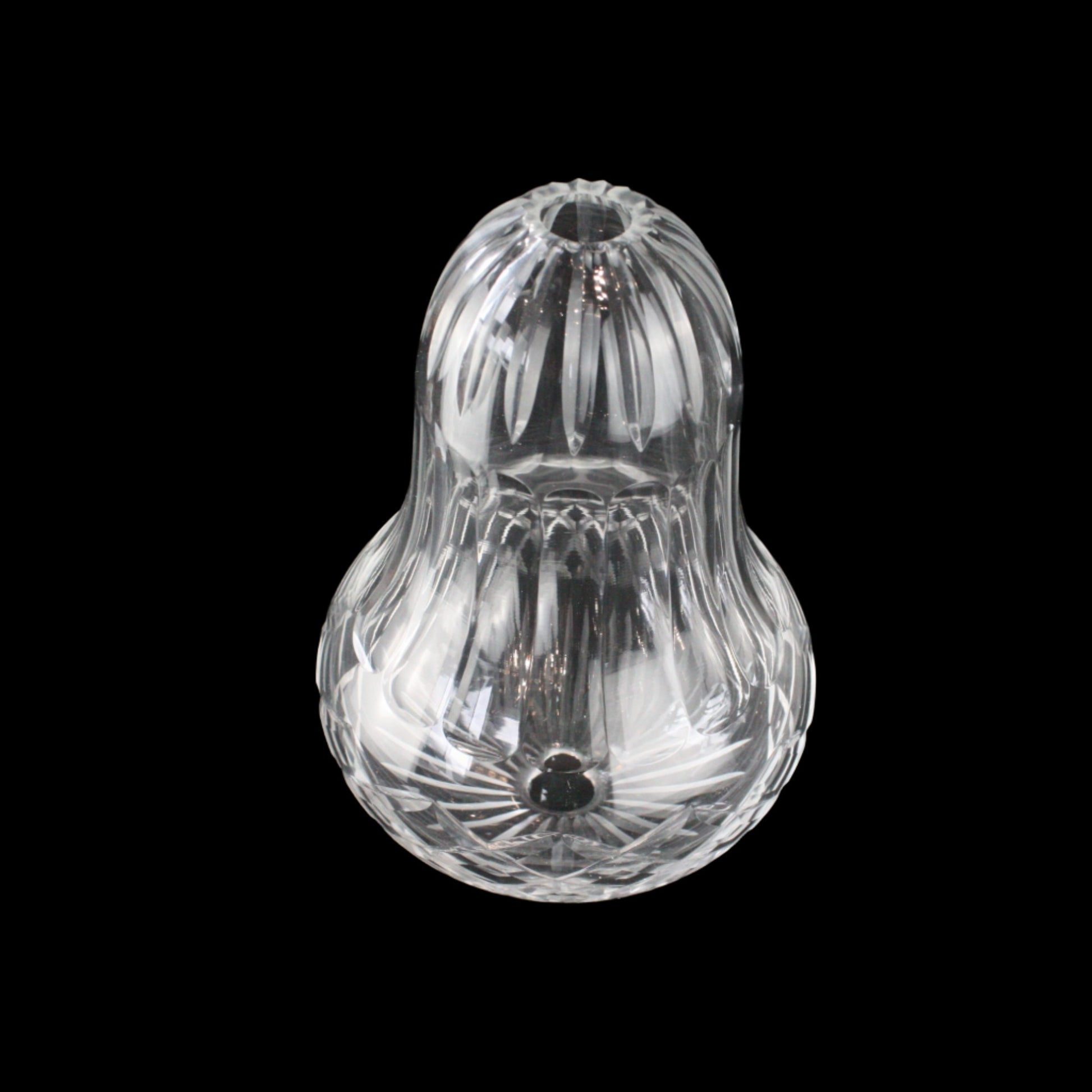 Hand-cut and polished Czech crystal column with criss-cross pattern.