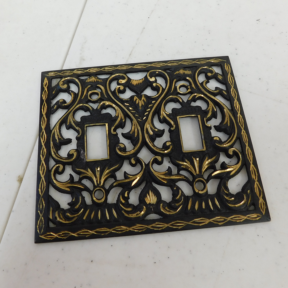 Decorative Cast Black Double Light Switch Plate with Gold Accents (Non-Standard)