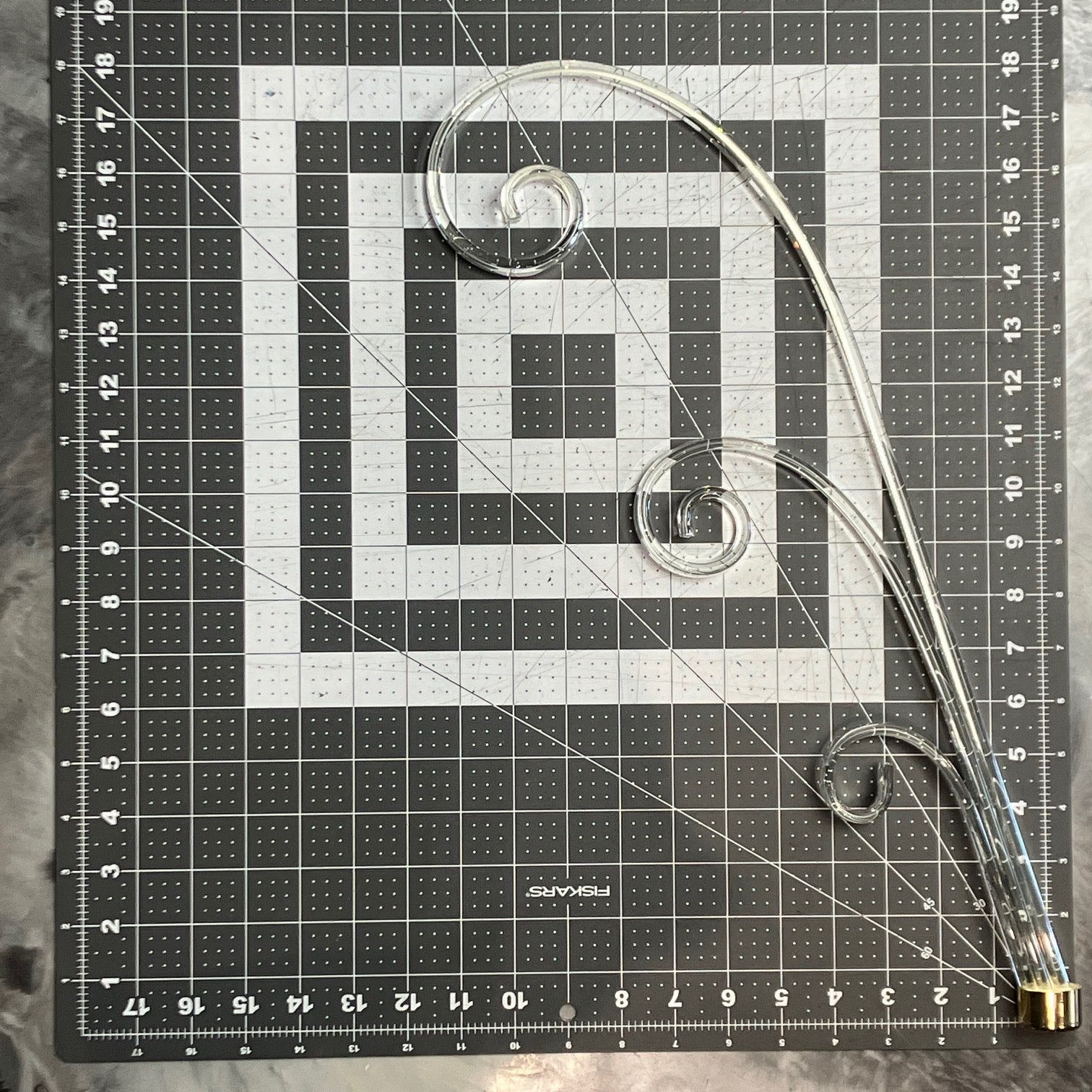 Scrolls are 3/8" width glass and tapers slightly to the curled tip