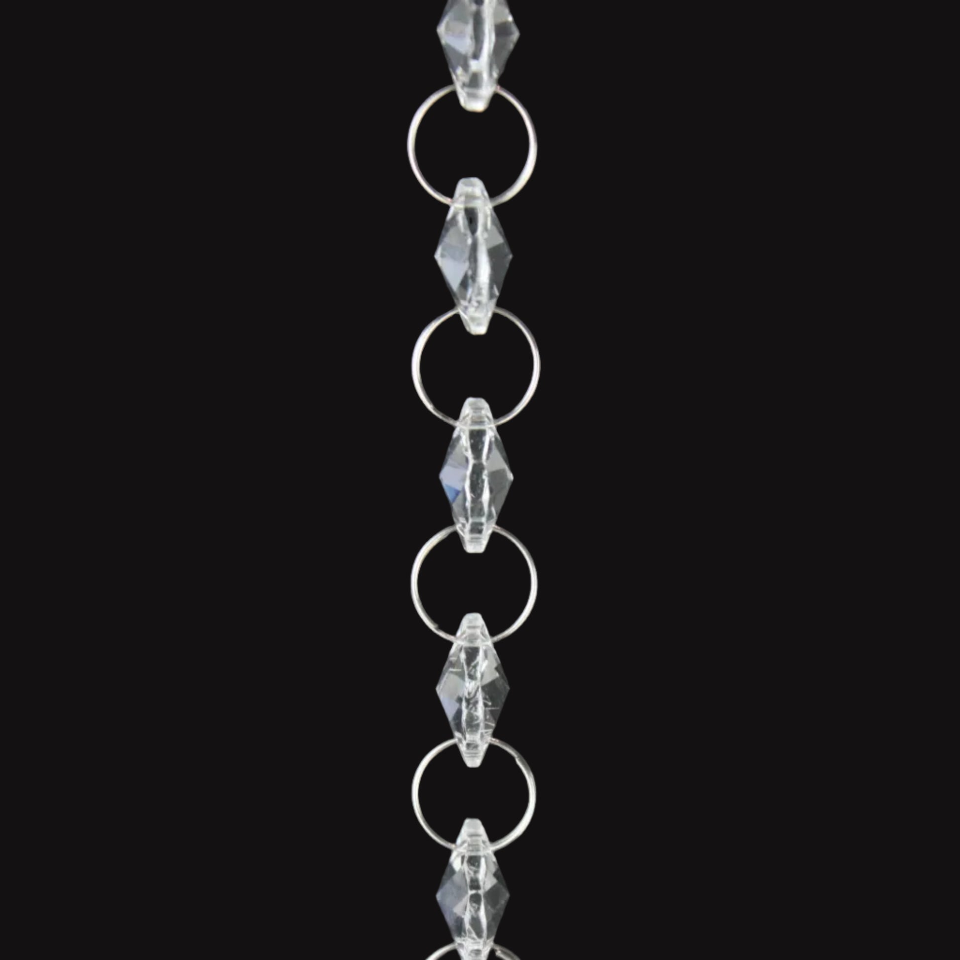 Beautiful and economical 1 meter (39") length chain made from 14mm crystal clear octagons. These multi-use chains are connected with 12mm chrome rings. 46 beads per chain.