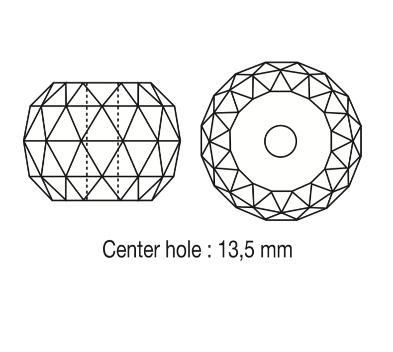 Hand-polished Turkish crystal faceted crystal break/center part. Flat top and bottom with a 13.5mm thru hole.